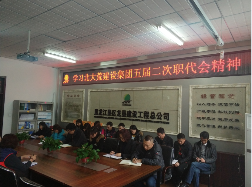 龙垦公司总经理位冰在学习会上提出,2018年是******贯彻十九大精神的开局之年,也是******深化改革的重要一年,建筑行业发展既面临严峻挑战,又充满大好机遇,我们必须进一步坚定信心、抢抓机遇,赢得先机。