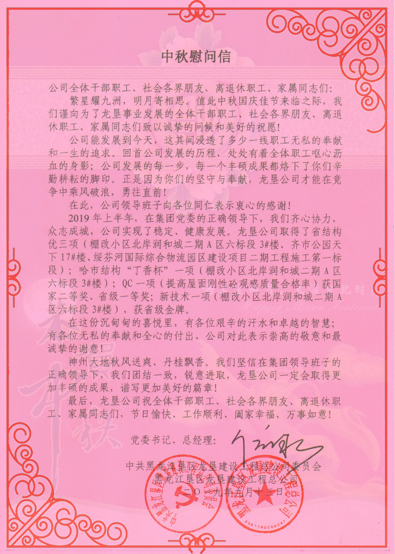中秋慰问信